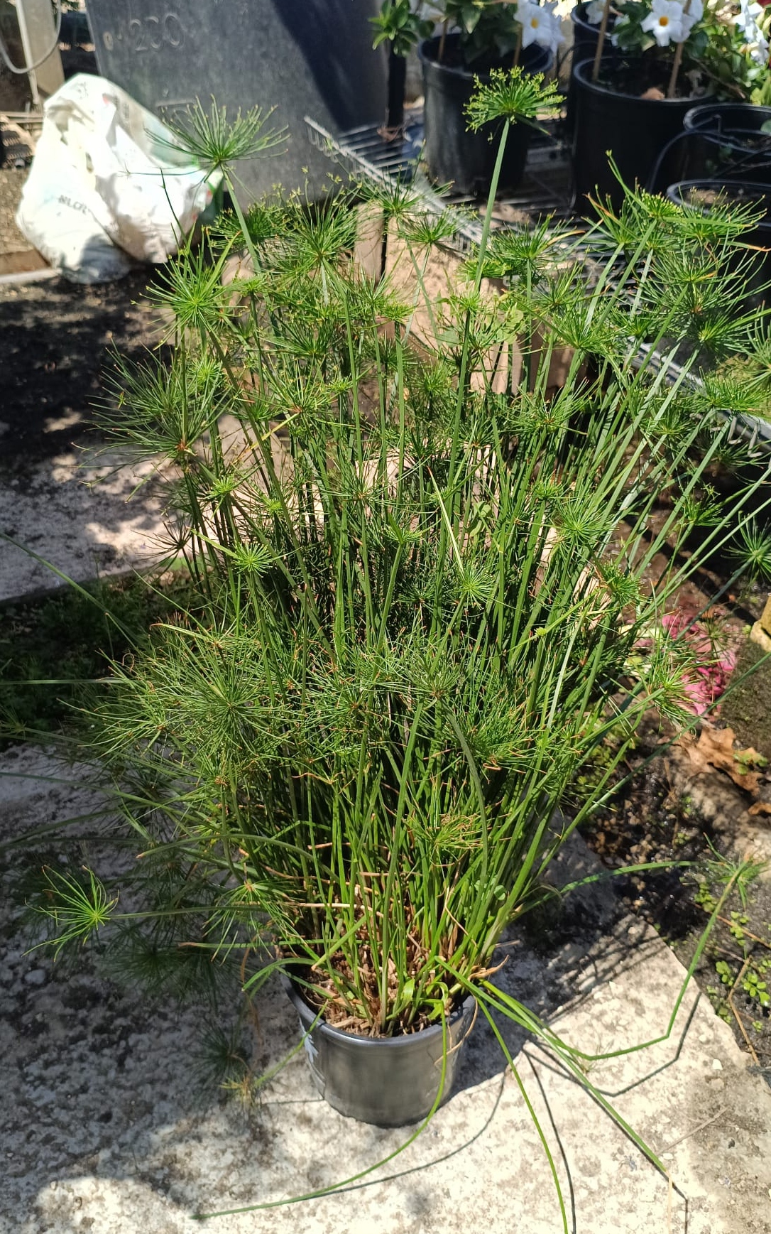 גומא ננסי (Cyperus alternifolius 'Nana') הוא גרסה קטנה ומעודנת של צמח הגומא הקלאסי, בעל עלים דמויי מטרייה שמעניקים מראה טרופי ומסקרן. זהו צמח מים אידיאלי לעציצים עם תחתית רטובה, לגידול ליד בריכות נוי או אפילו בתוך הבית באדניות לחות.