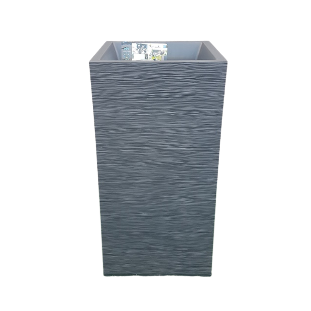 אדנית גבוהה בעיצוב מודרני ונקי, עם טקסטורת פסים עדינה וצבע אפור שמחמיא לכל עיצוב. הצורה המרובעת והגובה שלה הופכים אותה לפתרון מושלם לפינות בבית, למרפסת מעוצבת או לכניסה יוקרתית.