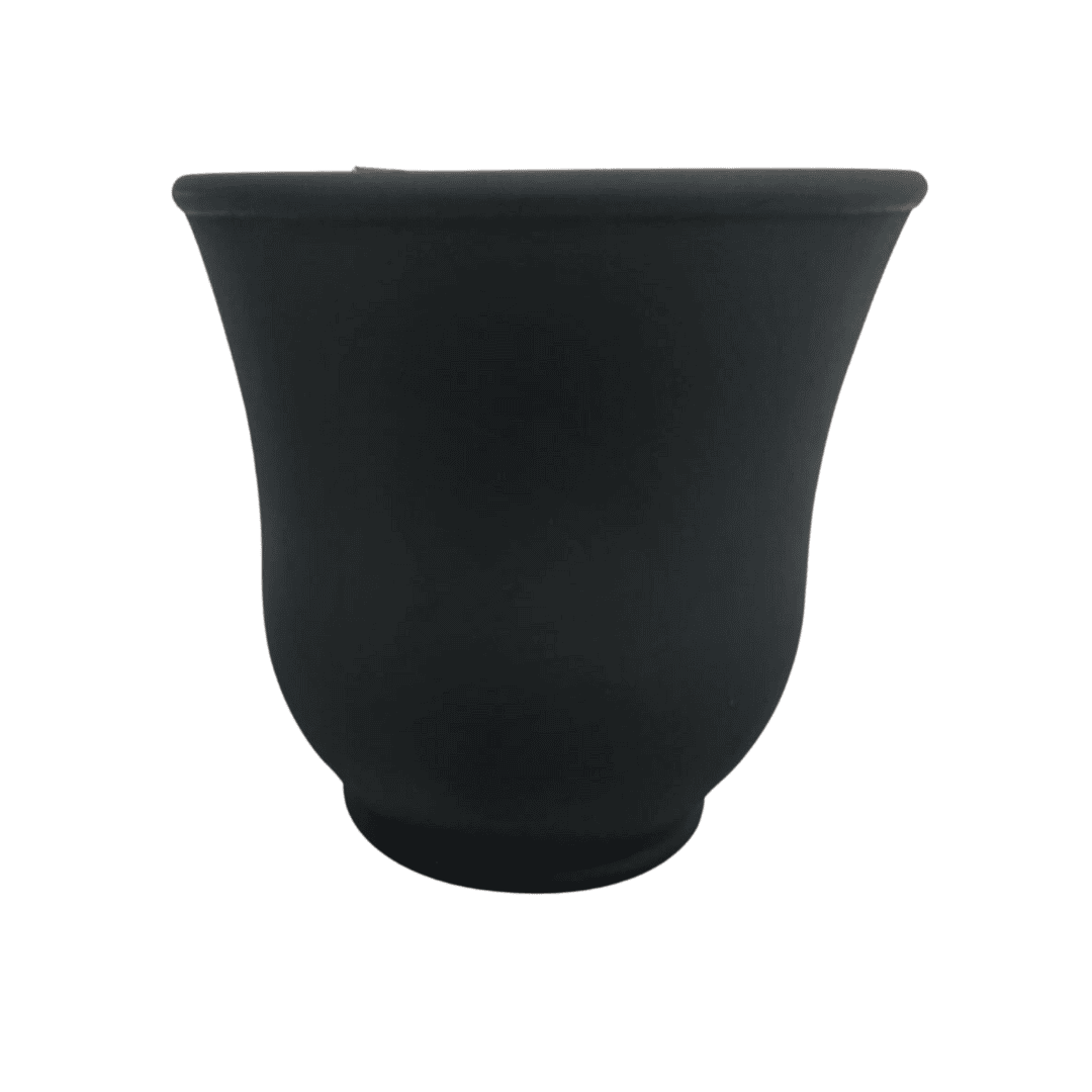 אדנית בעיצוב עגול קלאסי עם שפה עליונה מעוגלת ופתיחה מתרחבת – מראה שמזכיר אדניות מסורתיות, אך עם גימור שחור מודרני ועוצמתי.