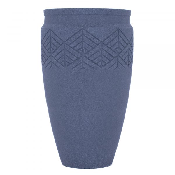 אדנית גבוהה בצורת גביע, עם עיטור גיאומטרי תלת־ממדי מרשים בחלקה העליון – בגוון כחול שמוסיף נוכחות עיצובית עמוקה ואלגנטית.