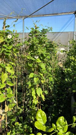 יש לכוון את הצמח בתחילת הגידול באמצעות חוטים או רשת – הוא יתפס ויתפשט במהירות. כדי לשמור על פריחה מרבית – מומלץ לדשן אחת לשבועיים בעונת הגדילה.