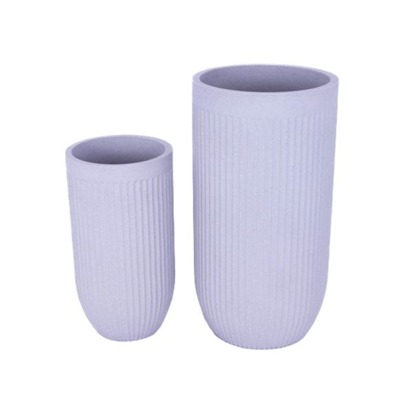 הסט כולל שתי אדניות בצורת צילינדר עם עיטור פסים אנכיים עדינים המקנים מראה ייחודי, מודרני ואלגנטי.