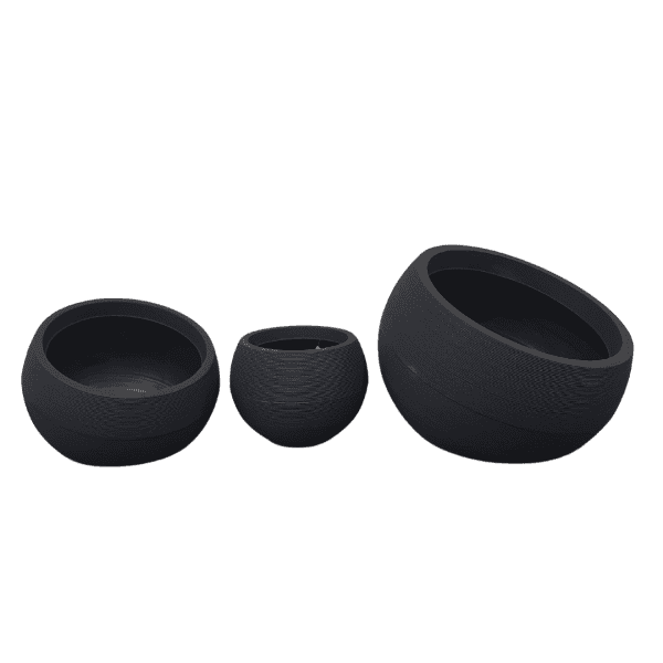 שלישיית אדניות בעיצוב גביע, עם קווים נקיים ושפה עליונה רחבה שמעניקה להן מראה יוקרתי ומודרני.