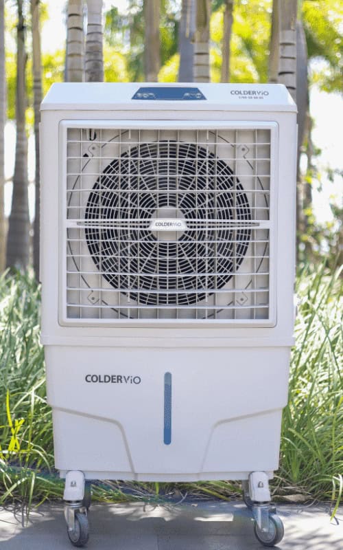 מצנן עוצמתי במיוחד לקירור חללים גדולים, עם טכנולוגיית BOOST חכמה, פדים כחולים צפופים, מיכל מים 100 ליטר, עוצמת קירור של 15,000 מק"ש, שלט רחוק ועיצוב מחוזק לניידות ועמידות גבוהה.