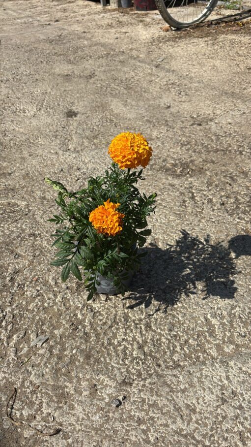 טגטס כתומה (Tagetes patula / erecta ‘Orange’) – פצצת שמש כתומה שכובשת כל ערוגה ומיכל בלב שלם. הפרחים הגדולים והכבדים שלה נראים כמו פומפונים זוהרים, והעלים הריחניים מסייעים להדוף מזיקים – לכן חובבי גינות ירק אוהבים לשתול אותה בין שתילי עגבניות ופלפלים.